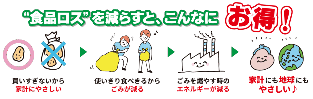 「食品ロス」 とは、 まだ食べられるのに捨てられている食品のこと