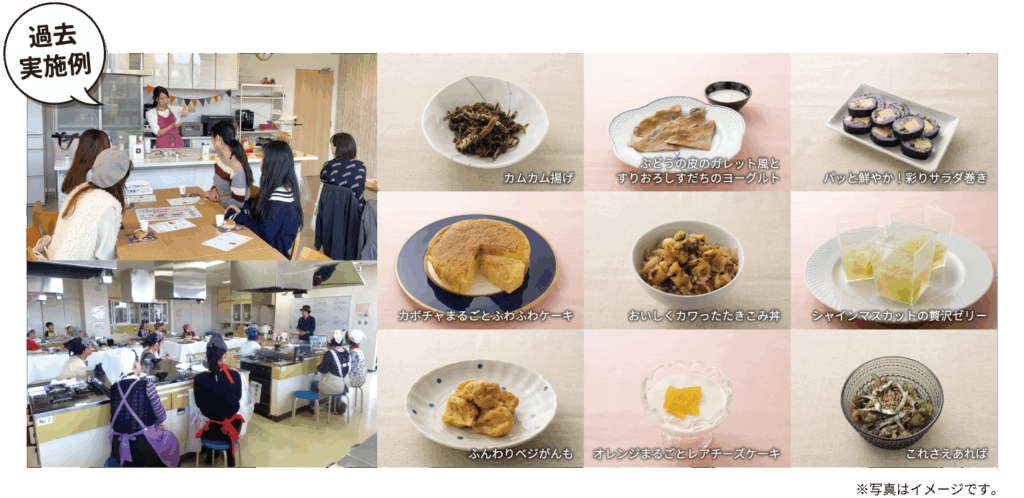 【持 ち 物】 エプロン・三角巾・ハンドタオル等 (手拭き用)・筆記用具・上履き(スリッパ可)