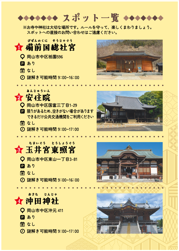 中区の歴史的寺社を巡りながら謎を解くイベントです