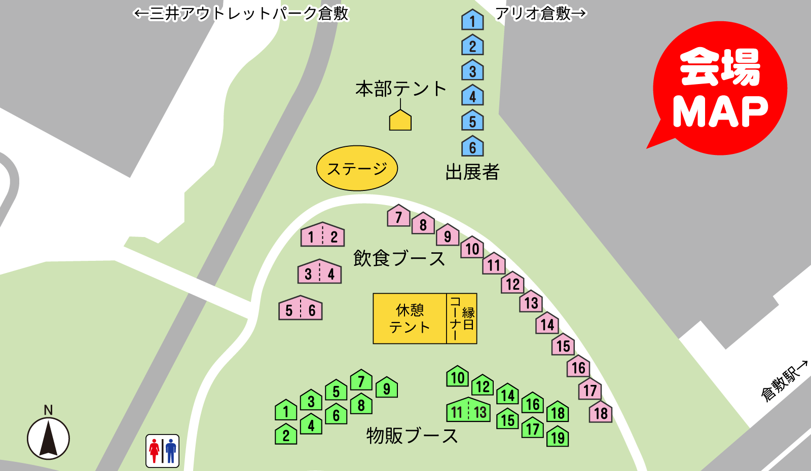 | 3 4 | エコクラシキ(有) | 焼肉、焼団子、イカ焼き、フルーツ飴、肉串、10円パン、レモンスカッシュ、シークヮーサー |